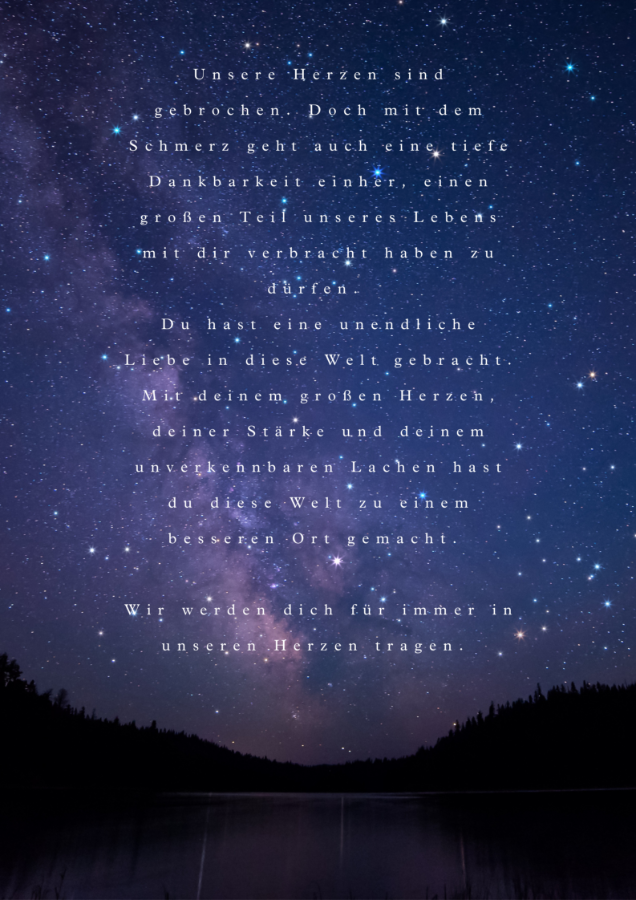 Du warst so stark- so tapfer. Hast immer noch in den komischsten Momenten einen schönen Spruch auf den Lippen gehabt… Zuversicht und Mut hattest du im Überfluss und hast gerne etwas davon abgegeben.